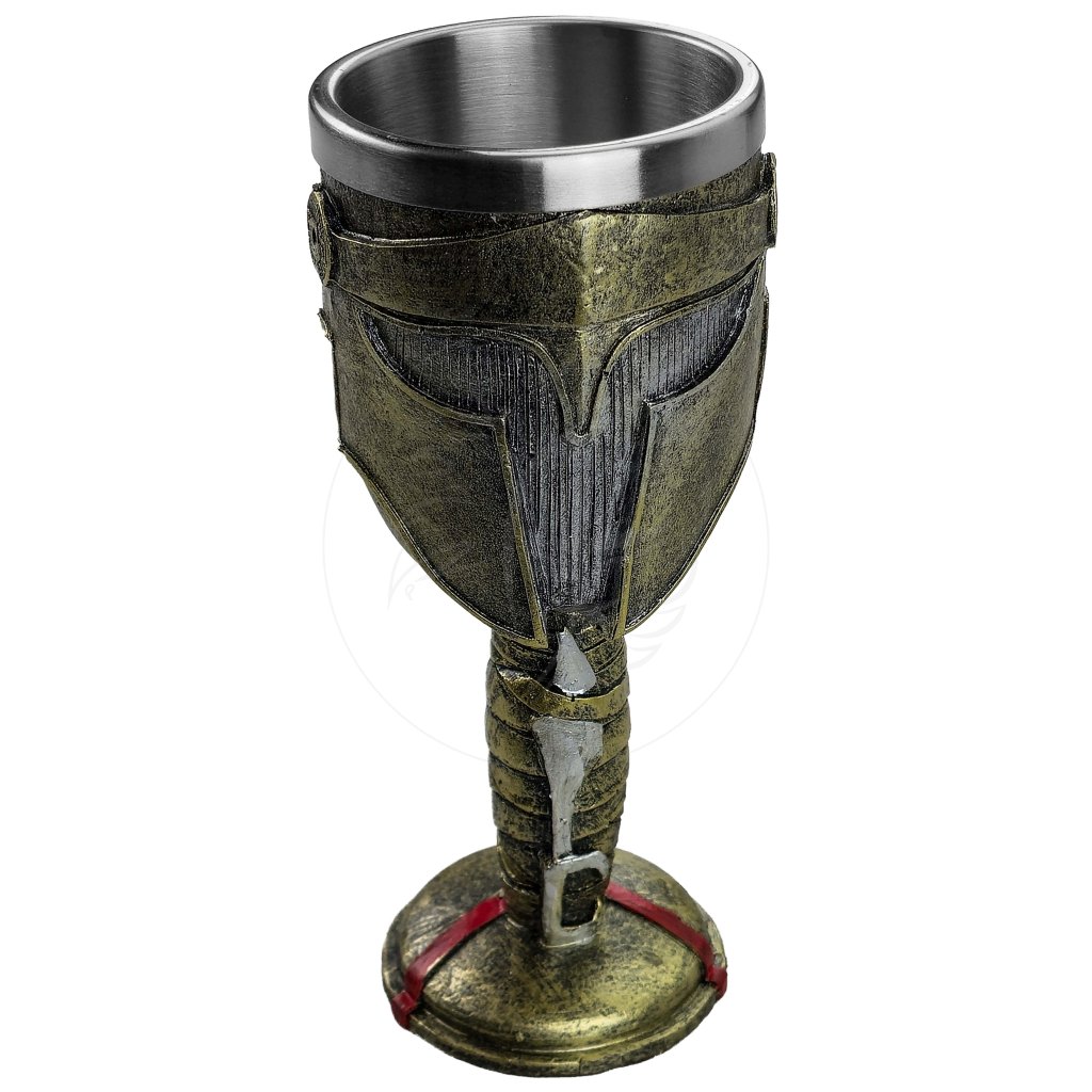 Exkluzivní kalich s vyobrazením Spartské helmy společně s ikonickým mečem. Tento kousek je vysoký 18 cm. Kalich je vyroben z pevné pryskyřice a hliníku, což mu dodává nejen krásný vzhled, ale také dlouhou životnost. Díky těmto materiálům je kalich lehký a přesto dostatečně robustní, abyste si mohli užít své oblíbené nápoje bez obav o poškození.
