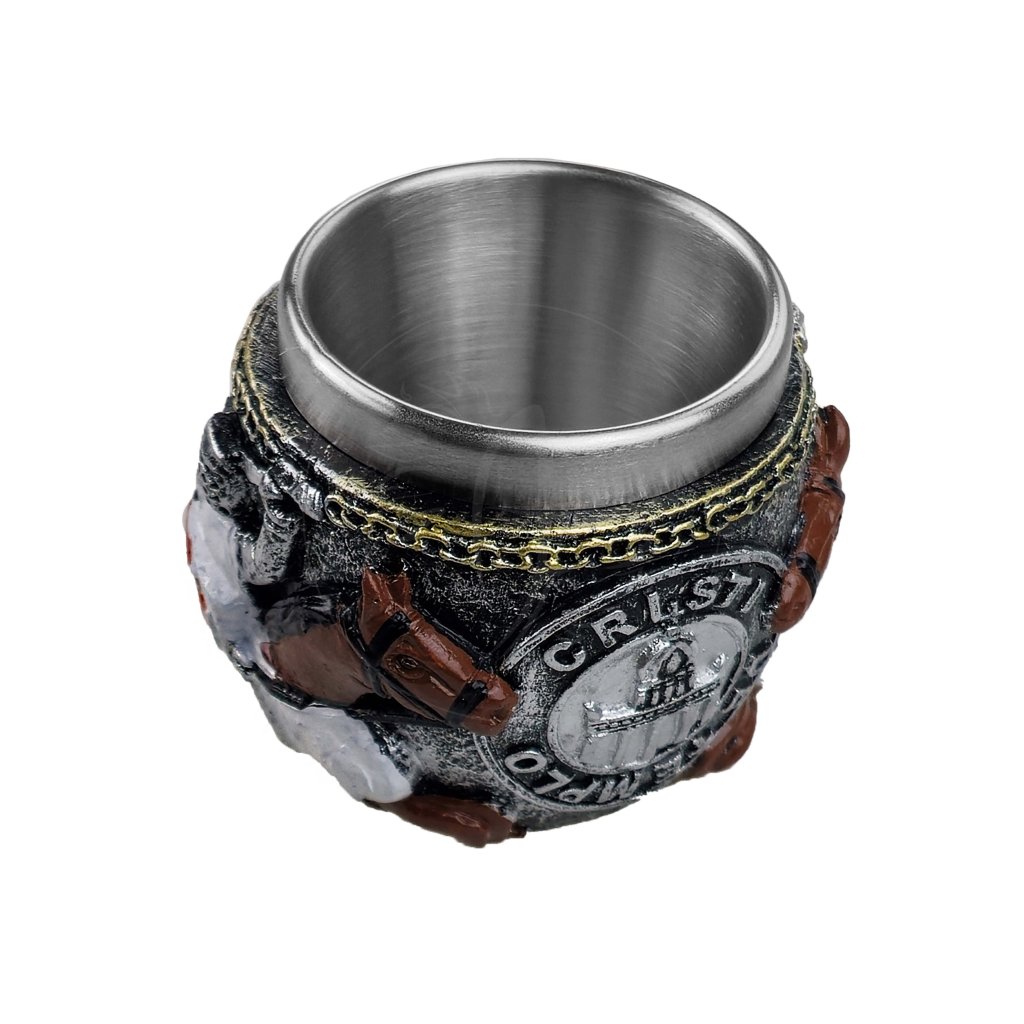 Objevte kus historie s tímto jedinečným Templářským hrnkem na panáky "THE HOLY GRAIL". Tento 5,5 cm vysoký hrnek je ozdoben detailním vyobrazením templářských motivů, které Vás přenesou do dob středověkých rytířů. Vyroben z pevné pryskyřice a hliníku, hrnek je nejen stylový, ale také odolný, což z něj činí ideální doplněk pro milovníky historie a sběratele.