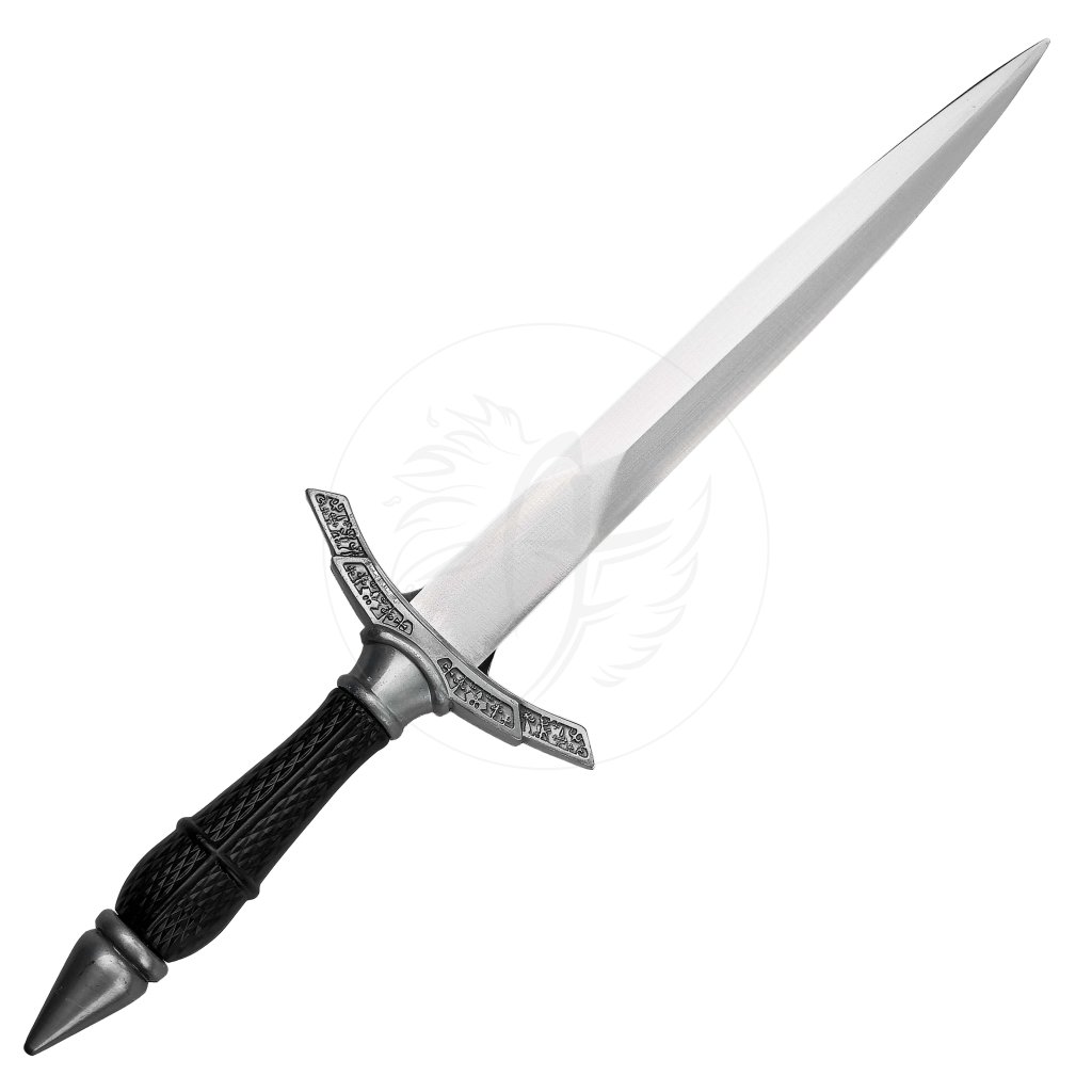 Čepel je vyrobena z nerezové oceli a je tupá, díky čemuž je dýka bezpečnější pro vystavování i příležitostné používání. Hodí se například jako originální otevírač dopisů či netradiční doplněk na stůl. Rukojeť a zdobení jsou z plastu, zatímco záštita je zhotovena ze slitiny hliníku, což zajišťuje solidní pevnost a působivý vzhled.