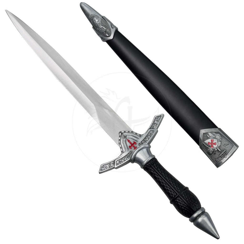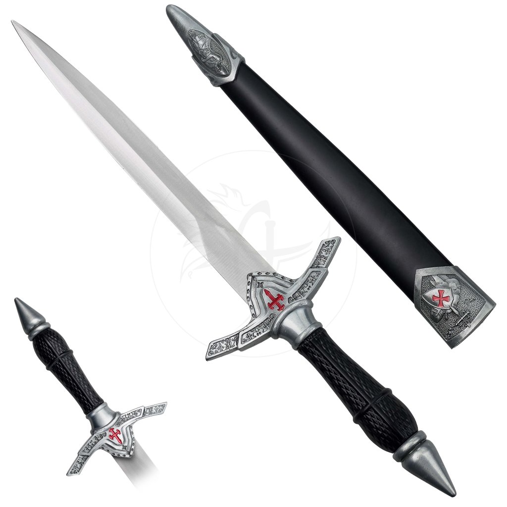 Krásná dýka, která v sobě nese odkaz rytířských řádů a středověké symboliky. Její design je inspirován templáři, což podtrhuje detailní zdobení záštity s červeným křížem, jenž je neodmyslitelně spjat s tímto legendárním řádem. I když se jedná o dekorativní dýku, působí velmi realisticky a dokáže být stylovým doplňkem každé sbírky historických replik.