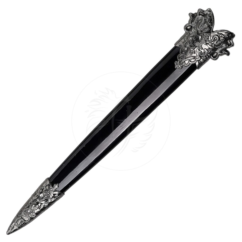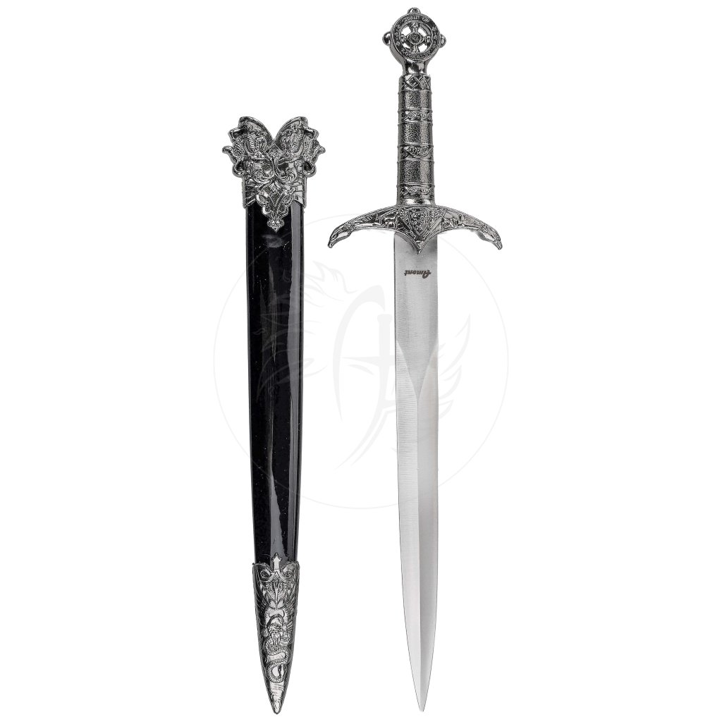 Zdobná dýka „LOCKSLEY MINI“ je poctou legendárnímu hrdinovi z Sherwoodu – Robinu Hoodovi. Tento dekorativní kousek vyniká precizním zpracováním a bohatým středověkým designem, který okamžitě přenese atmosféru do doby rytířů a zbojníků. Dýka je ideální jako sběratelský exponát, rekvizita pro film či divadlo, nebo jako elegantní doplněk pro historické nadšence.