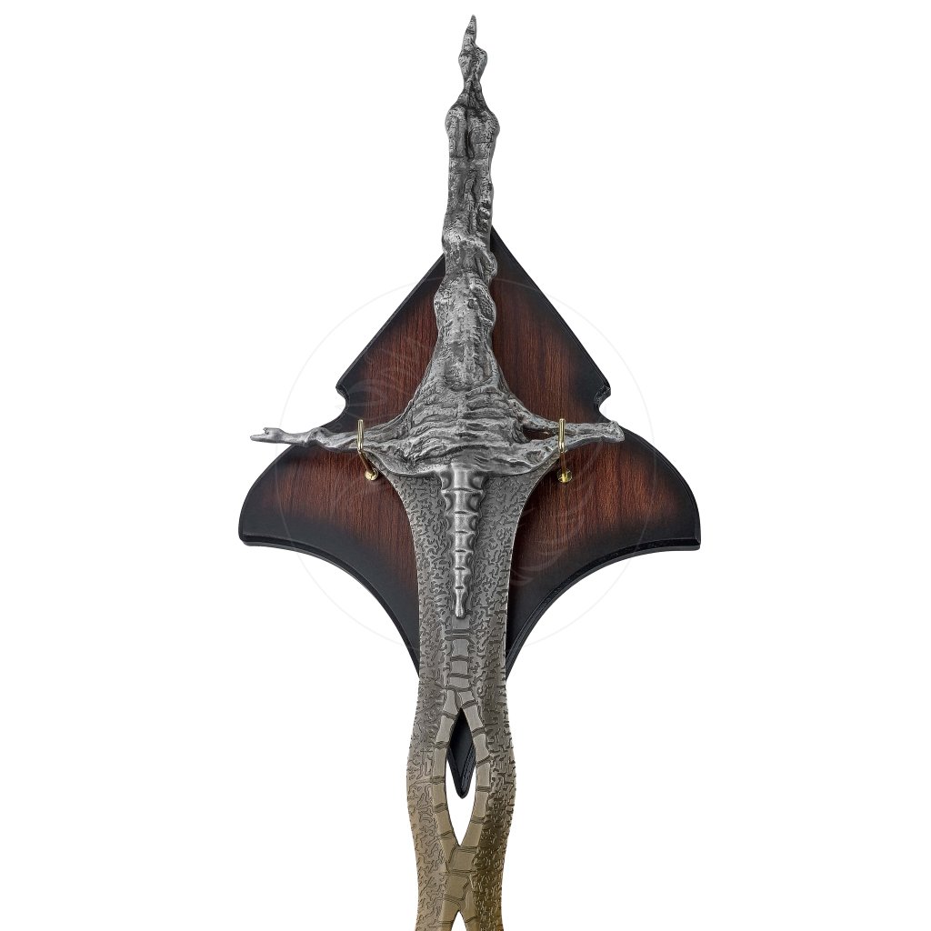 Součástí balení je dřevěná závěsná plaketa, umožňující vystavení meče na zeď jako dominantní prvek herní nebo sběratelské kolekce. Díky své délce, celokovové konstrukci a kvalitnímu zpracování patří mezi nejpůsobivější dekorativní repliky inspirované Elden Ring.