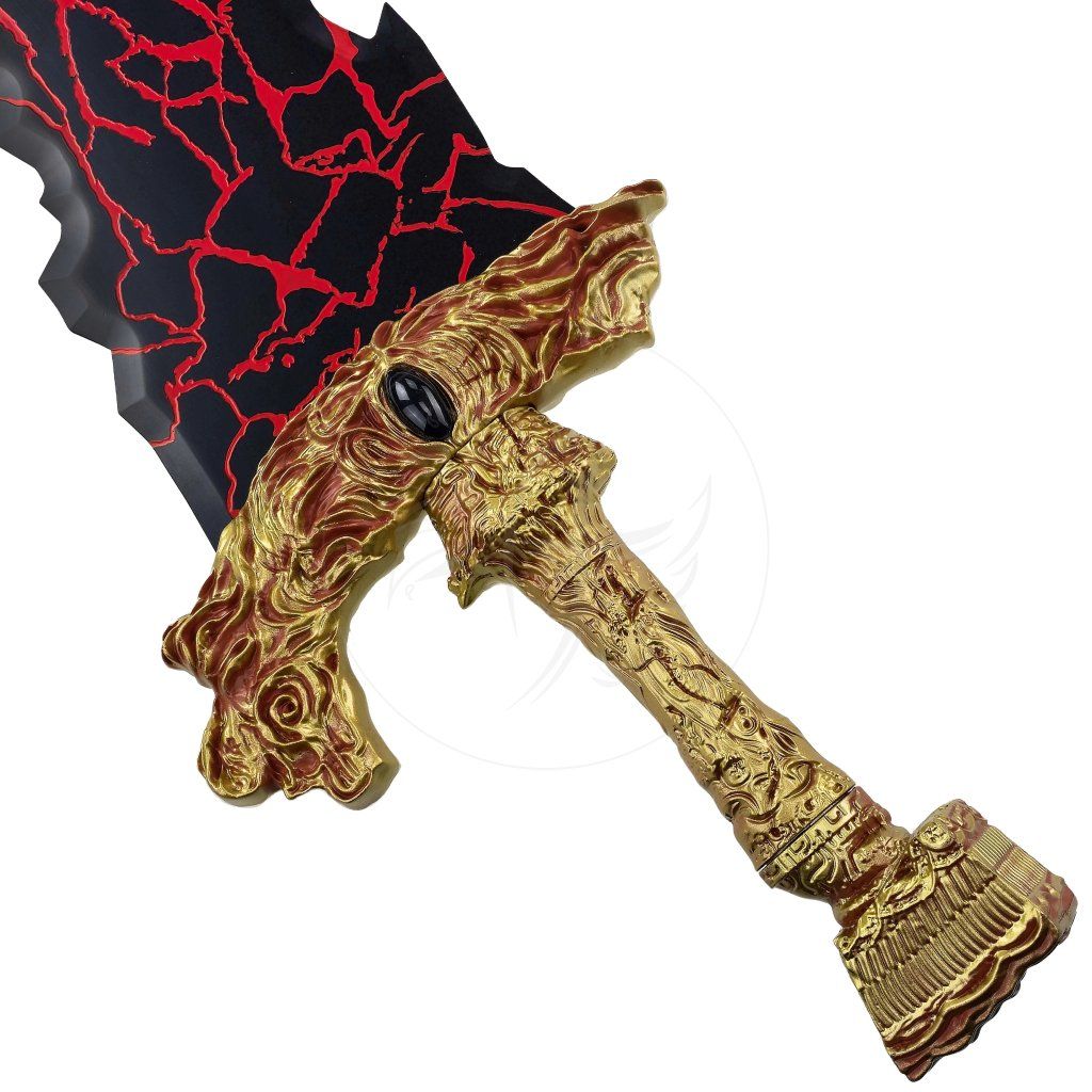 Čepel je vyrobena z nerezové oceli a není ostřená, což z ní dělá ideální dekorativní a sběratelský kus. Masivní rukojeť ze slitiny hliníku je detailně zpracovaná a dodává meči potřebnou robustnost i výrazný vizuální kontrast. Díky vysoké hmotnosti přes 5 kg působí meč extrémně realisticky a „těžce do ruky“, což ocení především fanoušci, kteří chtějí autentický pocit z herní předlohy.