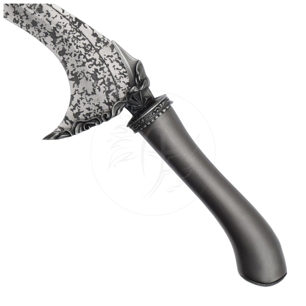 Rukojeť z hliníku je navržená pro pohodlné držení, její plynulé křivky vedou prsty přirozeně a podporují pocit kontroly nad celou čepelí. Dekorativní prstencový prvek v místě záštity čepele ozvláštňuje vizuální styl a přidává dýce fantasy vzhled typický pro Elden Ring. Celá dýka tak působí jako by byla přímo ze světa Elden ringu.