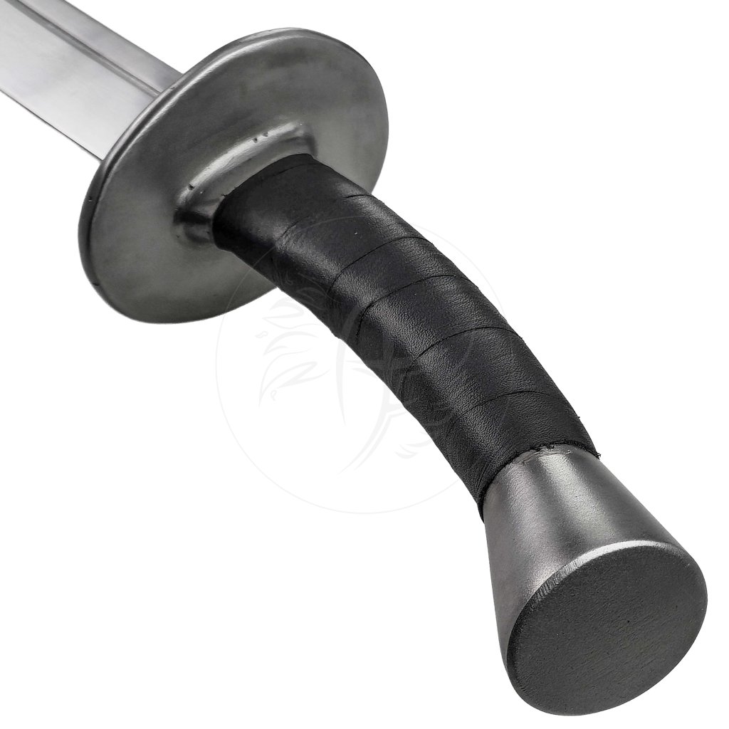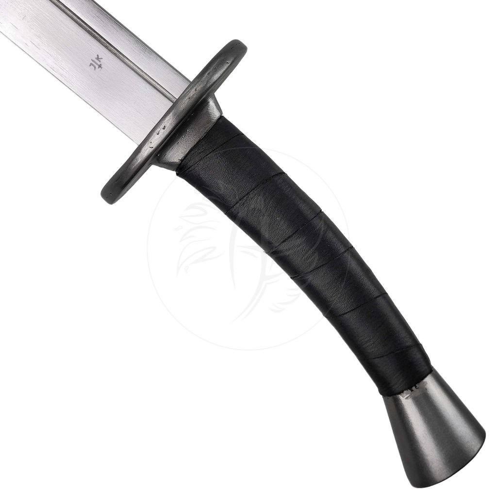 Rukojeť je pokryta pevným koženým opletem, který poskytuje jistý a pohodlný úchop i při delším používání. Kovová záštita chrání ruku před údery, zatímco hlavice přispívá k vyváženému těžišti a plynulému ovládání. Každý kus je originální ručně kovaný výrobek z české dílny, vytvořený s důrazem na detail, odolnost a high quality zpracování.