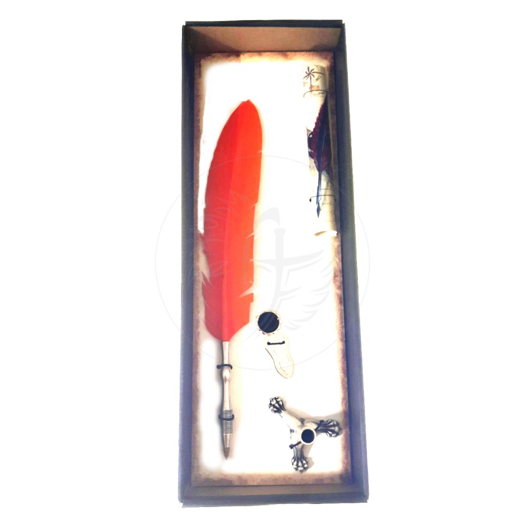 Luxusní brk/propiska se stojánkem, pergamenem a glejtem "PIRATE KING - ORANGE"