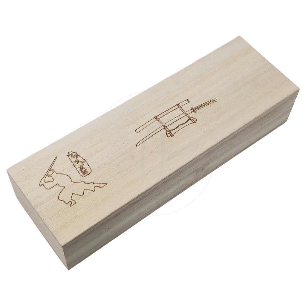 Součástí balení je také plastová pochva s decentním lakovaným povrchem a výstavní stojánek, díky kterému můžeš mini-katanu umístit na stůl, poličku nebo k hernímu setupu. Celé provedení doplňuje dřevěná dárková krabička, která nejen chrání obsah, ale i skvěle vypadá.
