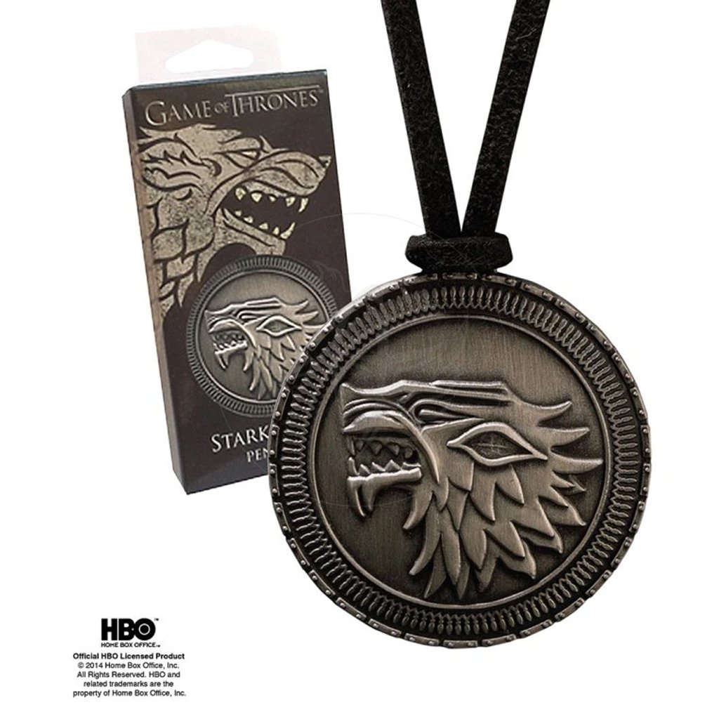 Kulatý kovový přívěsek zobrazující hlavu vlka – znak rodu Starků ze seriálu Game of Thrones (Hra o trůny). Průměr amuletu je 3,5 cm. Součástí je kožená šňůrka. Krásný dárek pro všechny milovníky této slavné série.