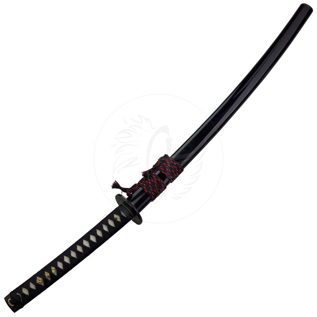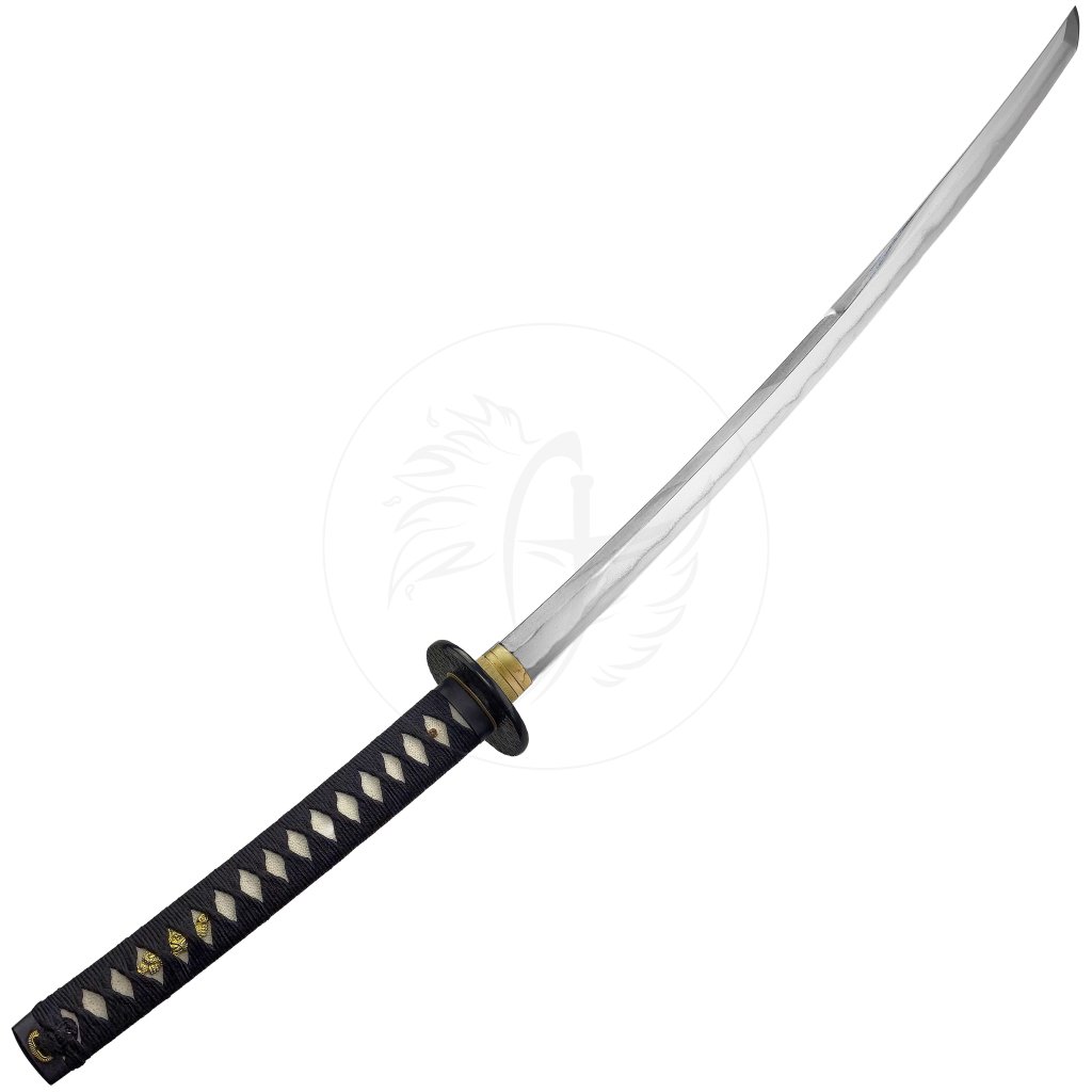 Luxusní katana „DIVINE AMATERASU“ představuje výjimečný meč inspirovaný japonskou tradicí a pojmenovaný po bohyni slunce Amaterasu. Dominantou této katany je čepel z luxusní oceli Wootz, historického materiálu považovaného za předchůdce damaškové oceli, ceněného pro svou strukturu, pevnost a schopnost držet ostří. Čepel je kalena tradiční metodou jílového kalení, díky čemuž vznikl autentický hamon – viditelná linie kalení typická pro pravé japonské meče.