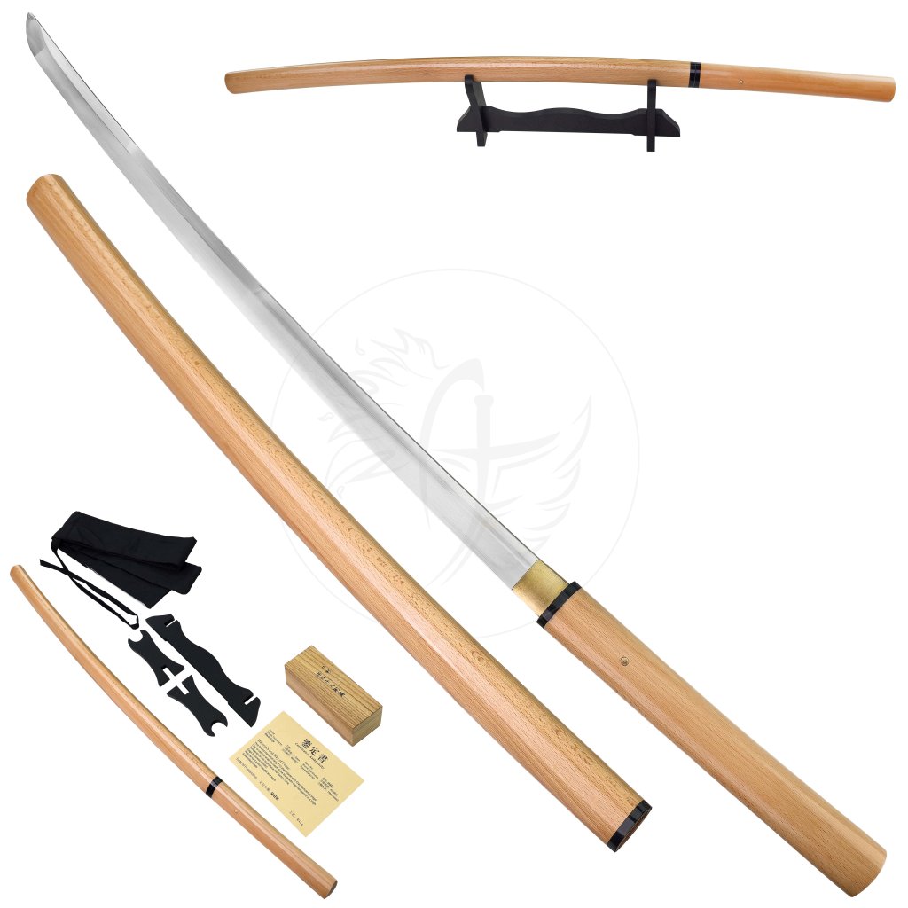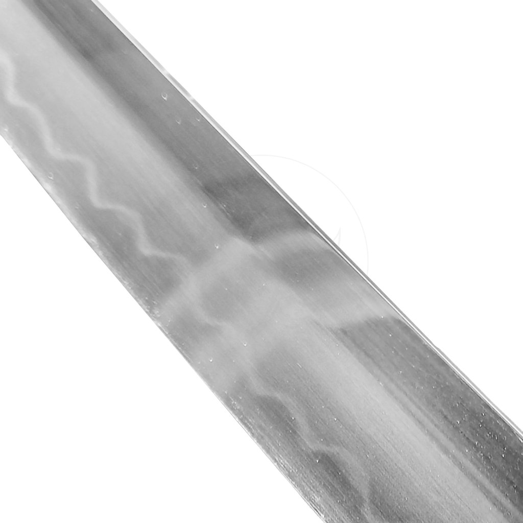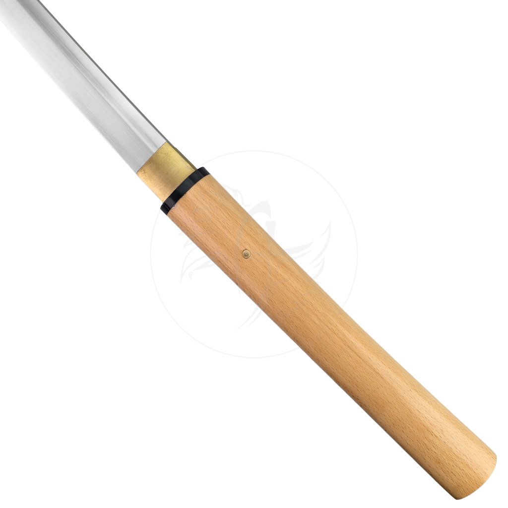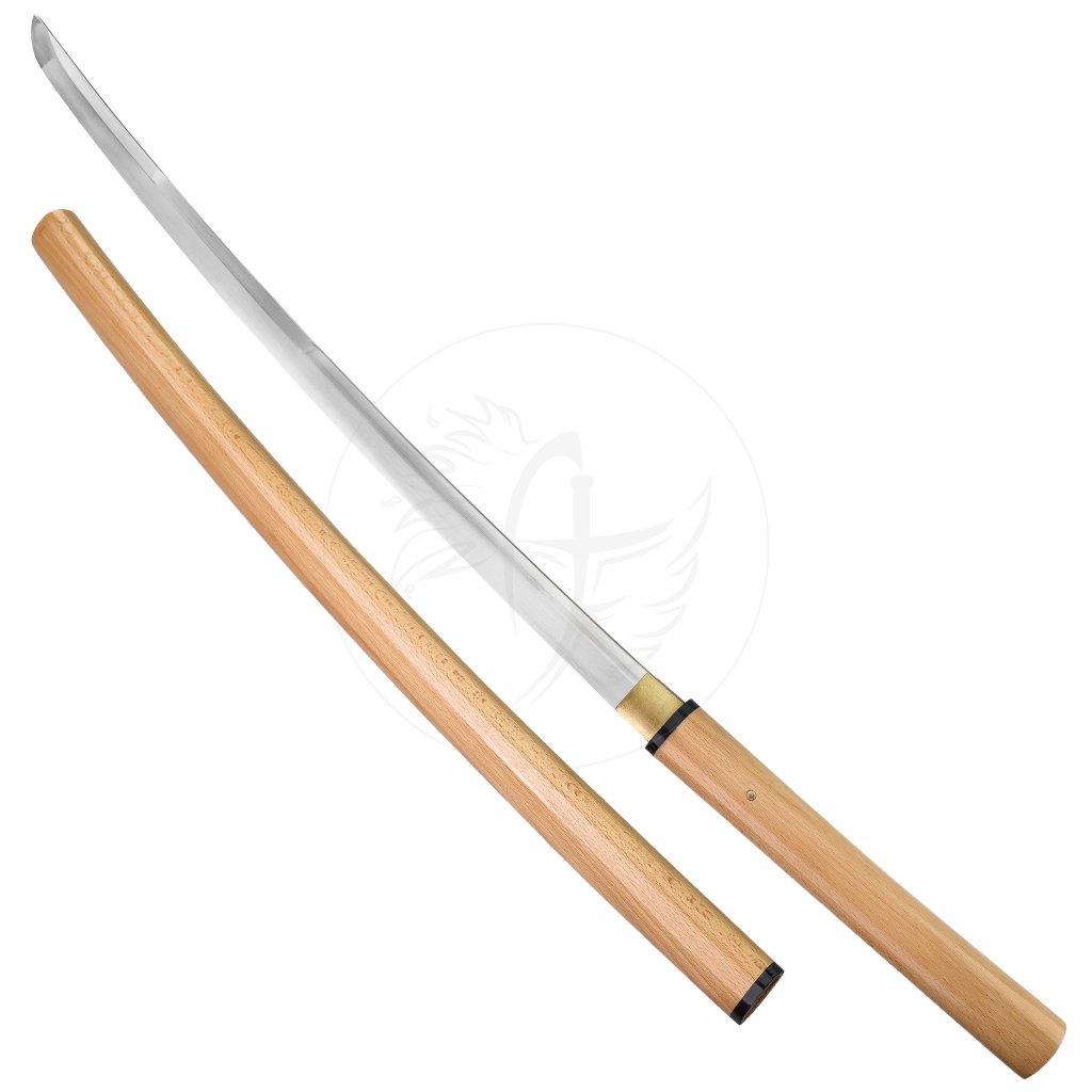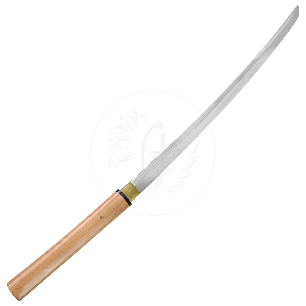 Čepel z oceli T10 a kalená jílem pro dosažení tvrdosti až 60 HRC, díky čemuž se na ostří vytváří nádherný velice jemný reálný hamon – jemná linie přechodu tvrdosti, která je důkazem mistrovské tepelné úpravy. Čepel je extrémně ostrá a zrcadlově vyleštěná, zasazená do minimalistické dřevěné rukojeti i pochvy z přírodního tvrdého dřeva, které dodávají zbrani elegantní a přirozený vzhled.