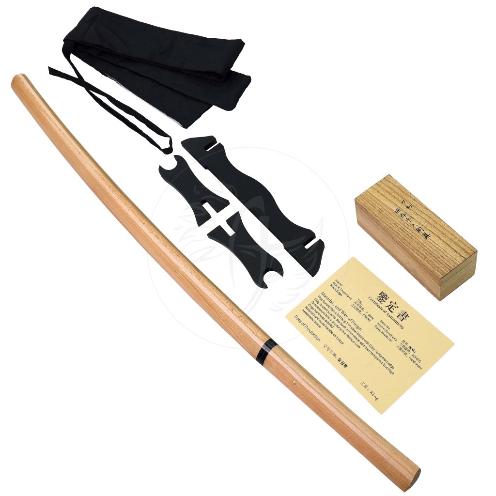 Součástí je bohatá výbava, která podtrhuje prémiový charakter této katany – dřevěná dárková krabice, háv na meč, sada na údržbu, stojánek a certifikát výroby. Každý kus je pečlivě kontrolován, aby splňoval nejvyšší standardy kvality. „KI NO KAZE“ je ideální volbou pro každého, kdo hledá autentický kousek japonského řemesla v luxusním provedení.