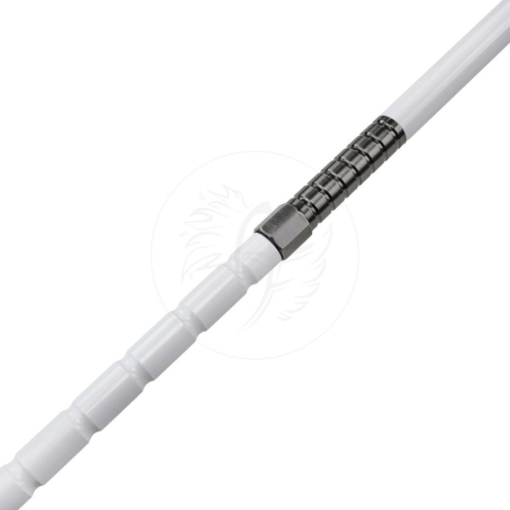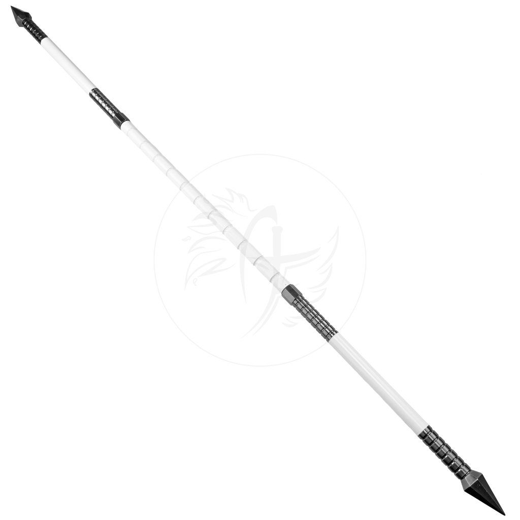 Tyč je kompletně vyrobena z kovu (hliníková slitina), což zajišťuje pevnost při zachování rozumné hmotnosti. Konstrukce je skládací, takže ji lze snadno rozebrat na více částí pro pohodlnější transport a skladování. Povrch v kombinaci bílé a kovové barvy podtrhuje estetiku Moon Knighta, zatímco zakončení dodává tyči výrazný taktický vzhled. Není určena pro kontaktní souboj – ideální je pro výstavní účely nebo jako doplněk ke kostýmu.