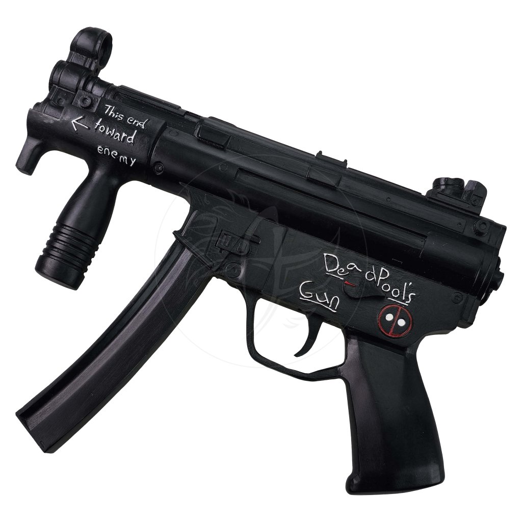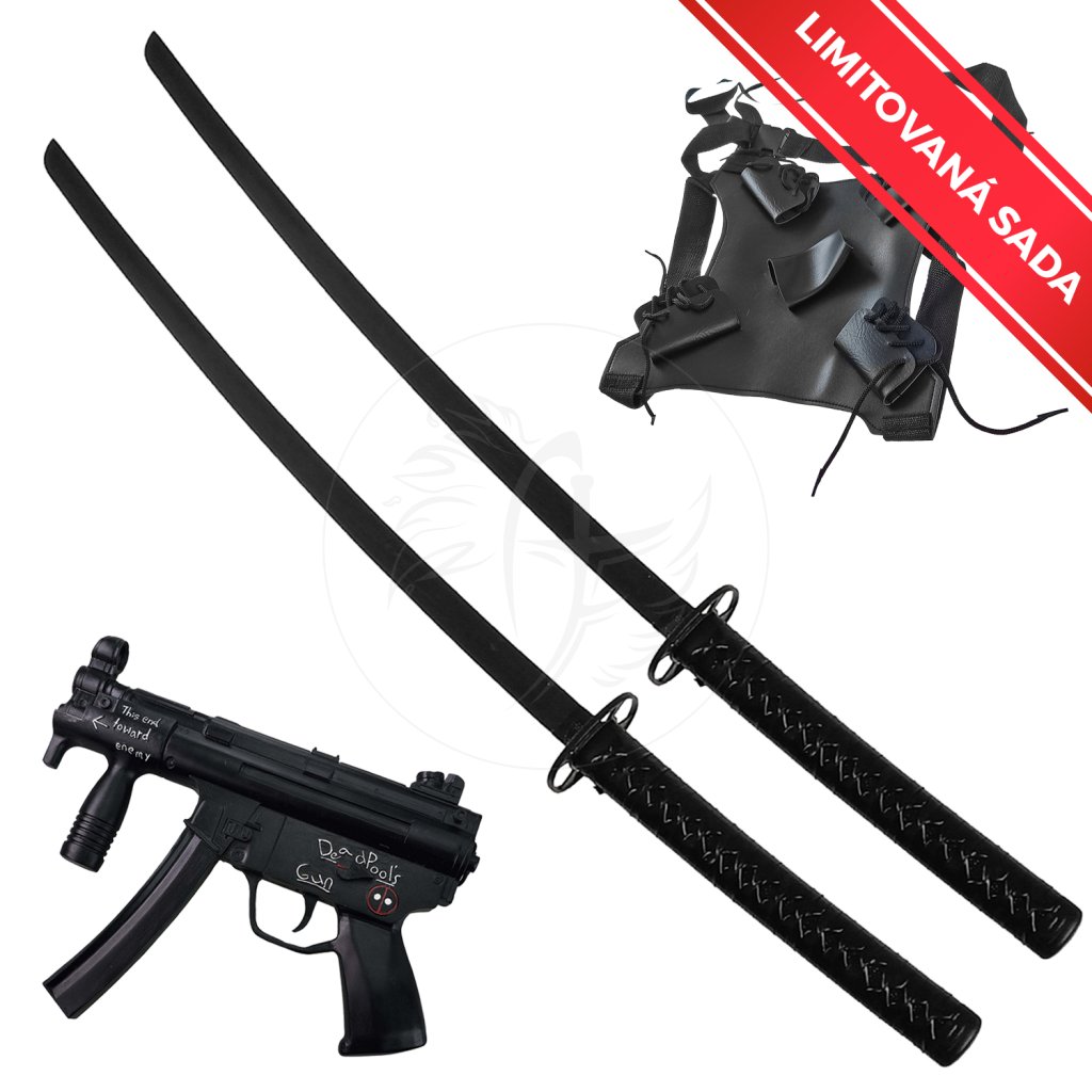 Obsah balení: 1× Samopal + Plaketa pro vystavení + 2× Deadpool katany + Zádový popruh
