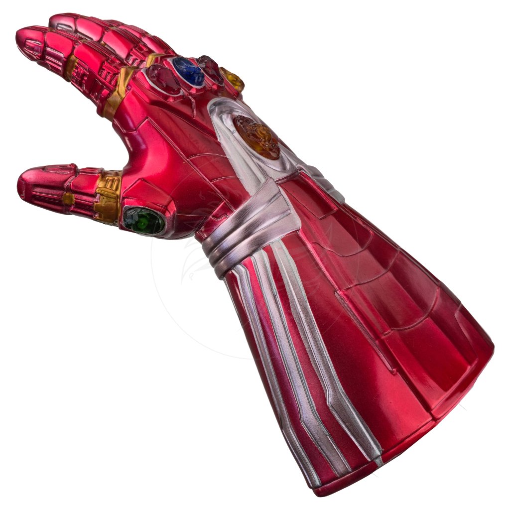 Ukaž svou odvahu jako samotný Iron Man (Tony Stark)! Tato detailně zpracovaná gumová replika legendární rukavice Nano Gauntlet ze světa Marvel je vybavena svítícími kamínky, které dodávají autentický efekt. Skvělý kousek pro malé fanoušky, sběratele i jako dekorace.