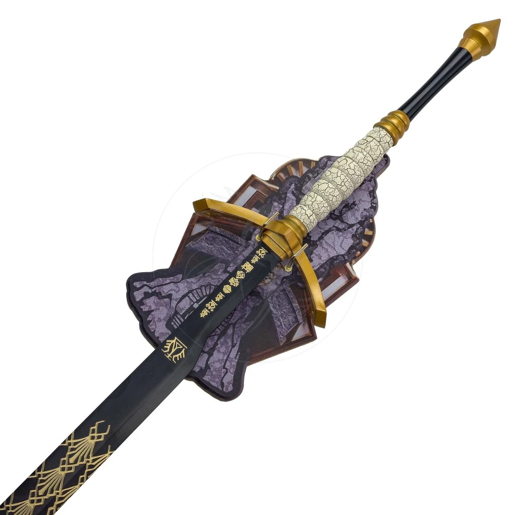 Čepel je vyrobena z nerezové oceli a není broušená, takže je meč určený především k dekoračním a sběratelským účelům. Rukojeť, záštita i hlavice jsou kovové, což podtrhuje pevný a hodnotný dojem z celého zpracování. Součástí balení je také dřevěná plaketa, díky které lze meč pohodlně vystavit na zdi a udělat z něj výrazný prvek pokoje, herního koutku nebo sběratelské stěny.