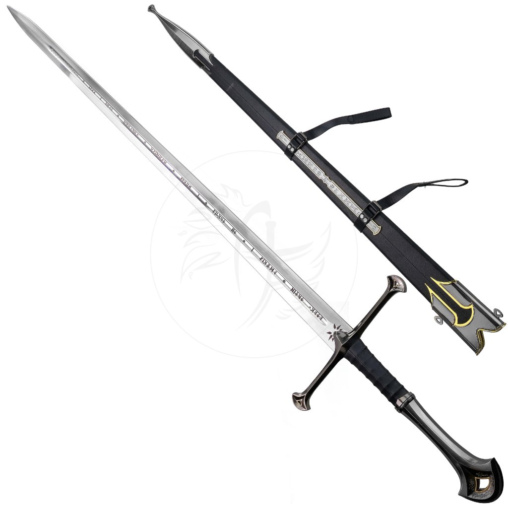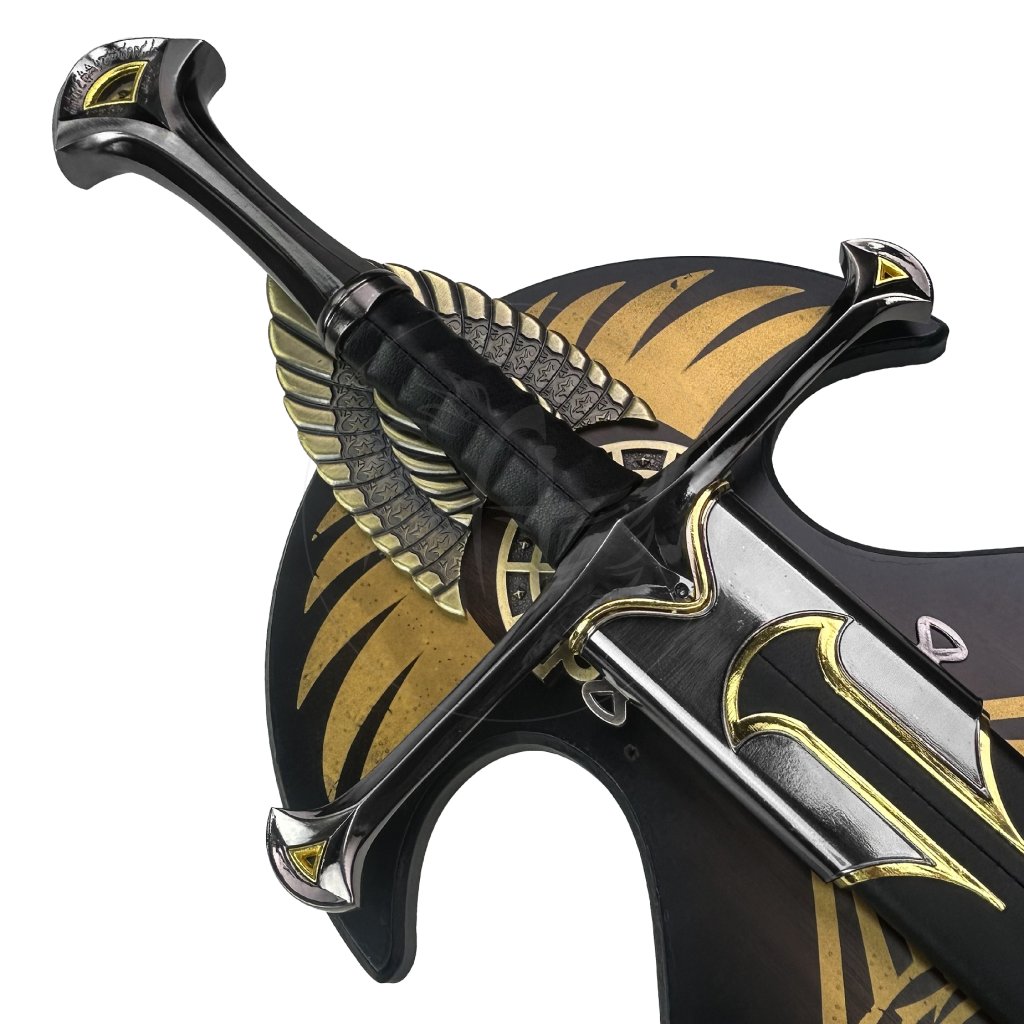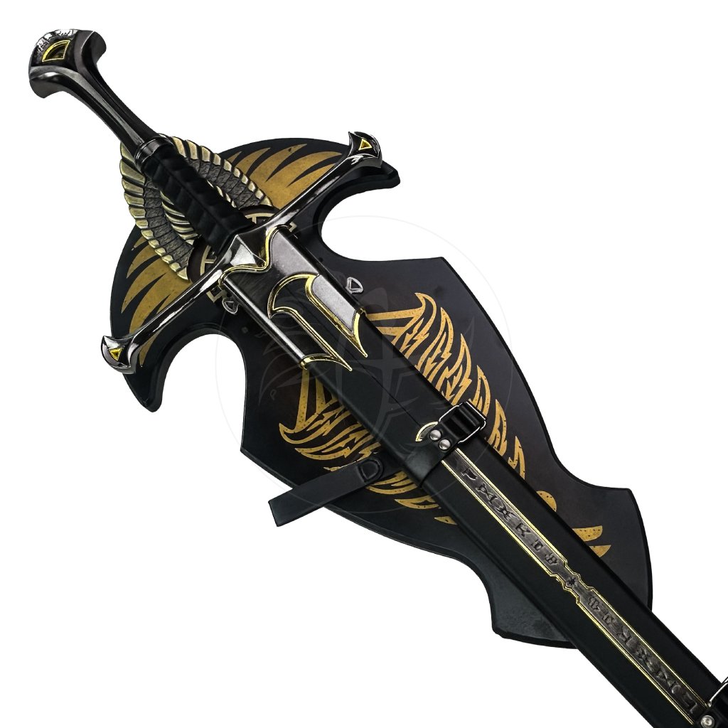 🔹 ANDURIL - THE SWORD OF ARAGORN – ikonická replika meče Aragorna, krále Gondoru ze světa Pána prstenů. Dlouhá čepel, zdobená záštita a elegantní rukojeť vytváří věrnou fantasy repliku, která je ideální pro vystavení na stěně, sběratelské účely nebo jako výrazný cosplay doplněk.