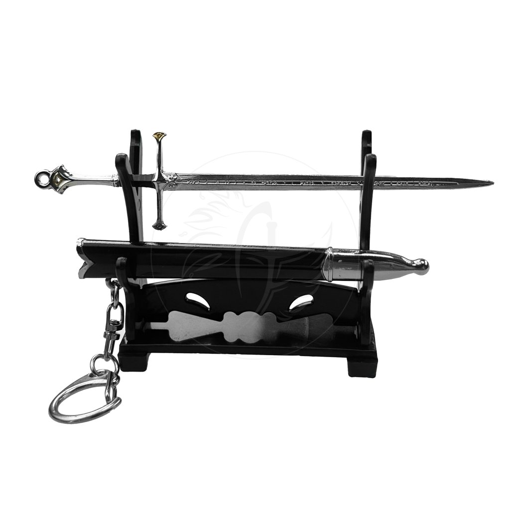 🔹 Klíčenka - MINI ANDURIL – bonusová klíčenka inspirovaná legendárním mečem Andúril. Malý, ale detailně zpracovaný doplněk, který může zdobit klíče, batoh nebo sloužit jako drobný dárek pro každého fanouška fantasy. Součástí balení je i stojánek na klíčenku.