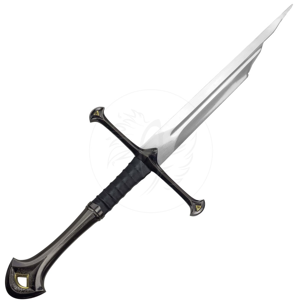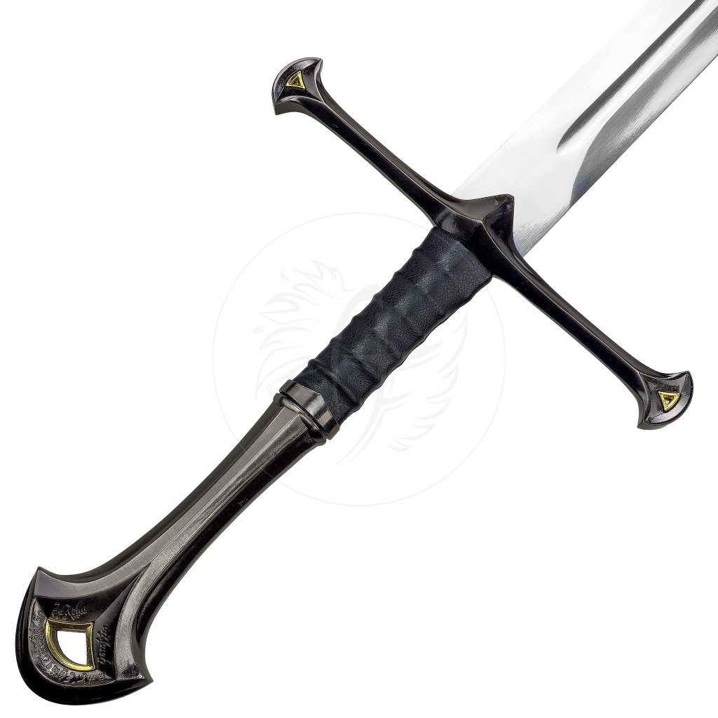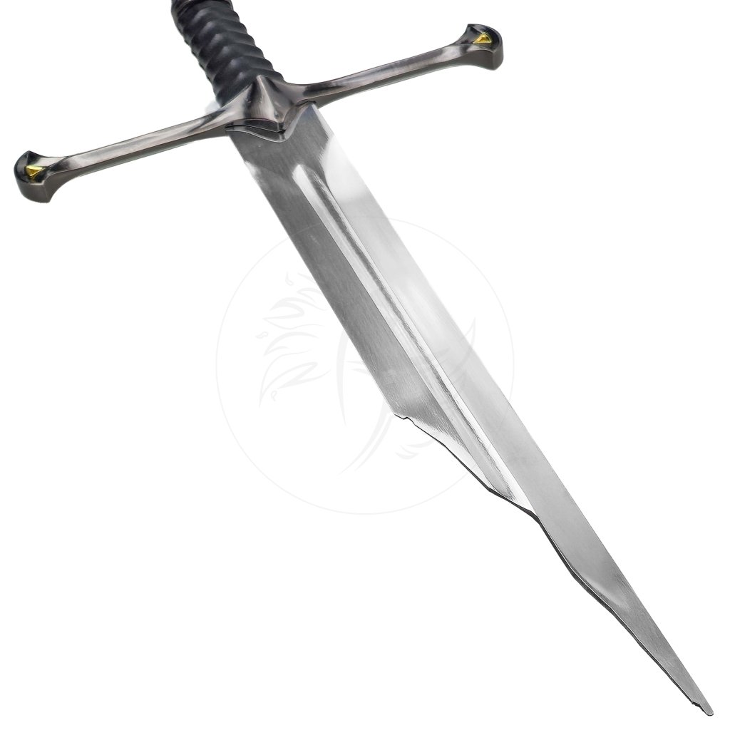 Ocelový Narsil „The Sword That Was Broken“ představuje jeden z nejzásadnějších mečů Středozemě. Právě touto zbraní Elendil padl v boji proti Sauronovi a Isildur s jejím zlomkem odťal Temnému pánu Prsten moci. Zlomený Narsil se stal symbolem pádu i naděje – a později byl přetaven v legendární Anduril, Plamen západu, který nesl Aragorn na cestě za znovuzískáním trůnu Gondoru. Tento meč tak není jen kusem oceli, ale příběhem o dědictví, krvi a návratu krále.
