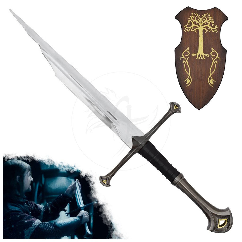 Zpracování vychází z filmové podoby zlomené čepele, jak byla uchovávána v Roklince. Ocelová čepel je tupá a určena výhradně k vystavení. Kovová rukojeť, záštita i hlavice nesou charakteristické prvky známé z filmové trilogie, samotná rukojeť má omotávku z umělé kůže. Celková délka meče je 76,5 cm, délka čepele 44 cm a hmotnost přibližně 1,08 kg, což zajišťuje pevný a realistický pocit při manipulaci. Součástí balení je dřevěná nástěnná plaketa, která umožňuje bezpečné a stylové zavěšení na zeď.