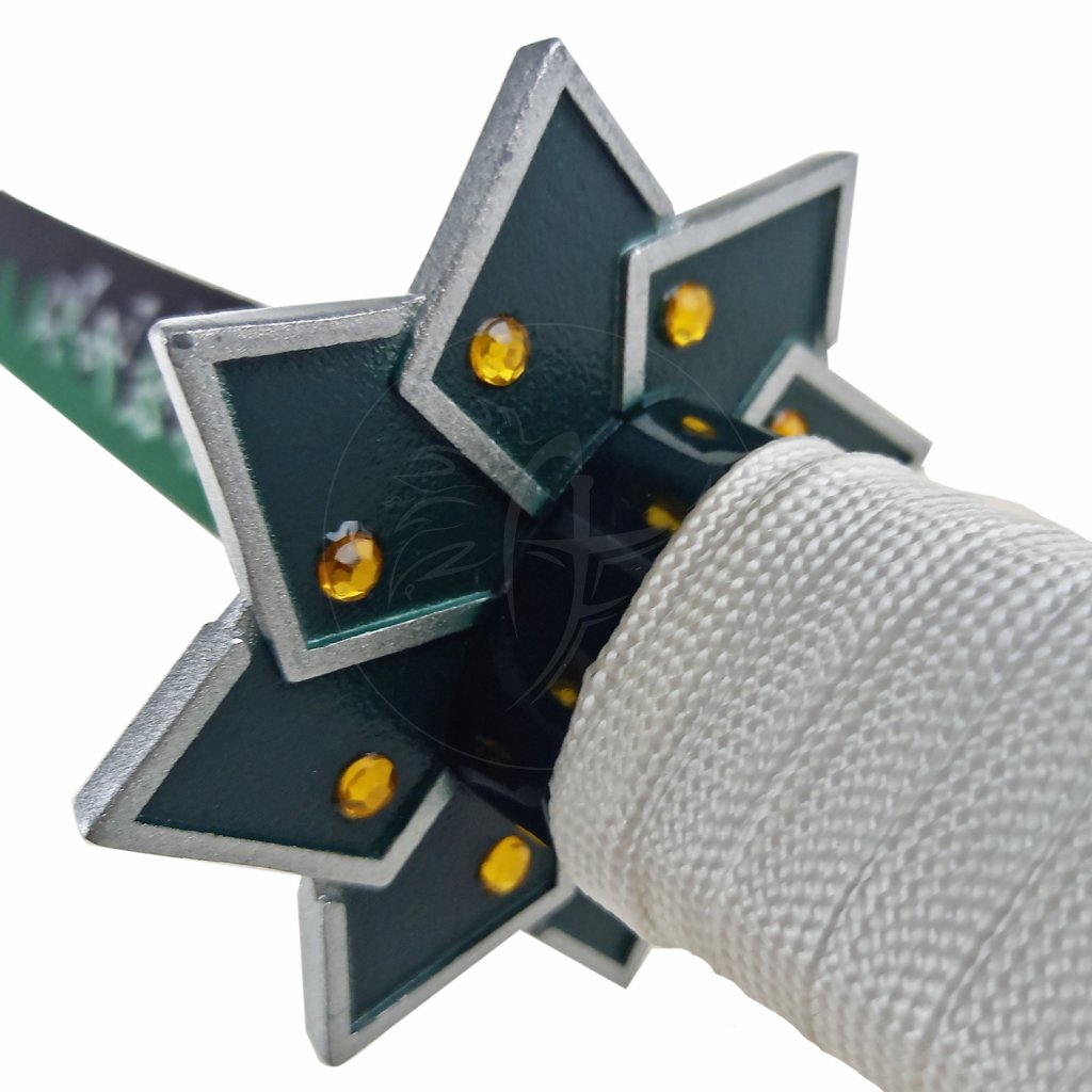 Hvězdovitá záštita je detailně zdobena stejně jako u originálu. Stejně jako čepel je vyrobena z nerezové oceli N420 a na ní navazuje rukojeť o délce 28,6 cm. Ta je vyrobena ze dřeva, které je překryto černou imitací rejnočí kůže, kterou překrývají 2 druhy opletu, bílý a zelený. K meči také patří dřevěná pochva ze dřeva, potažena černou ekokůží zdobenou bílými pruhy.