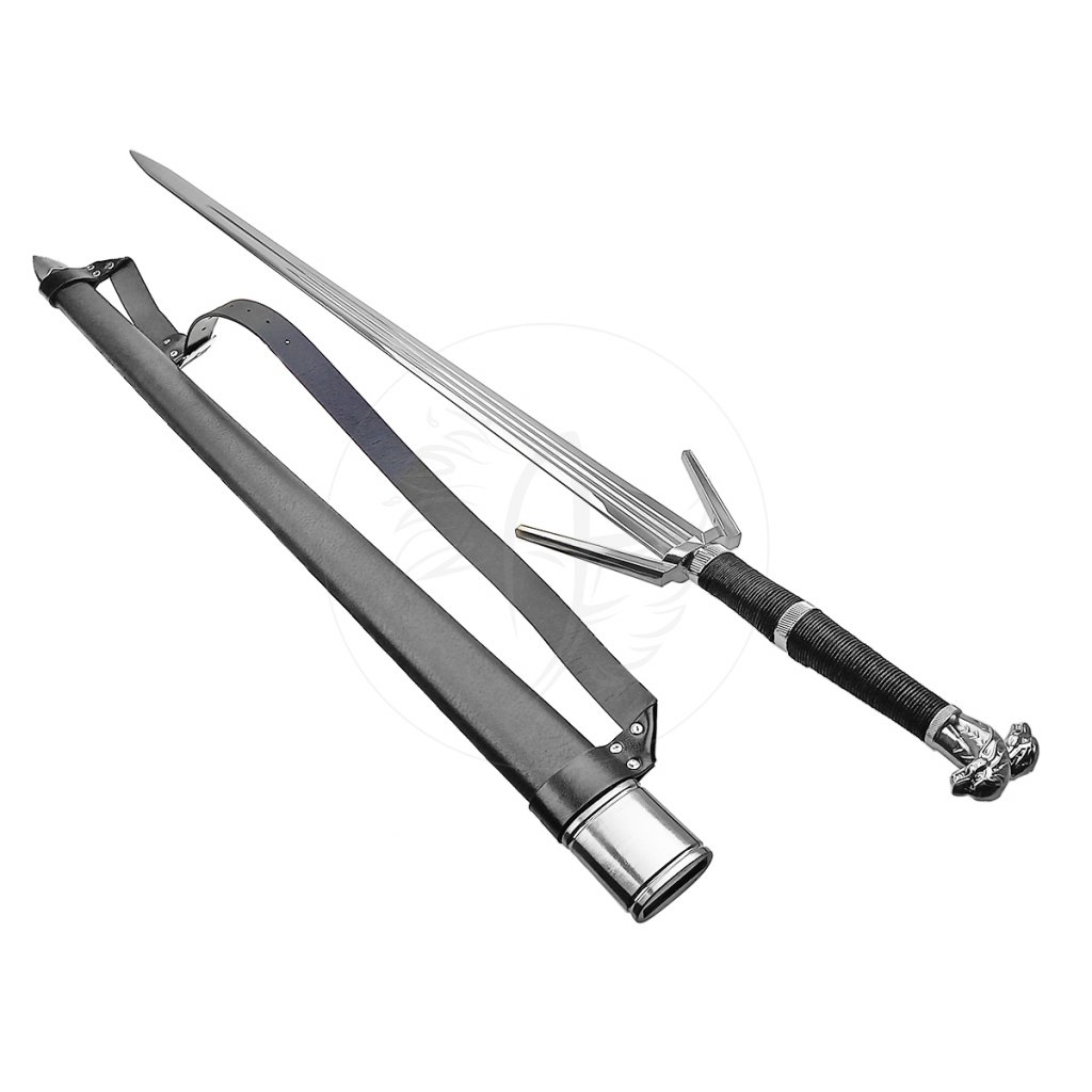 Luxusní 1,5-ruční meč "WITCHER - ZAKLÍNAČ STŘÍBRNÝ" s pevnou pochvou a zádovým popruhem!