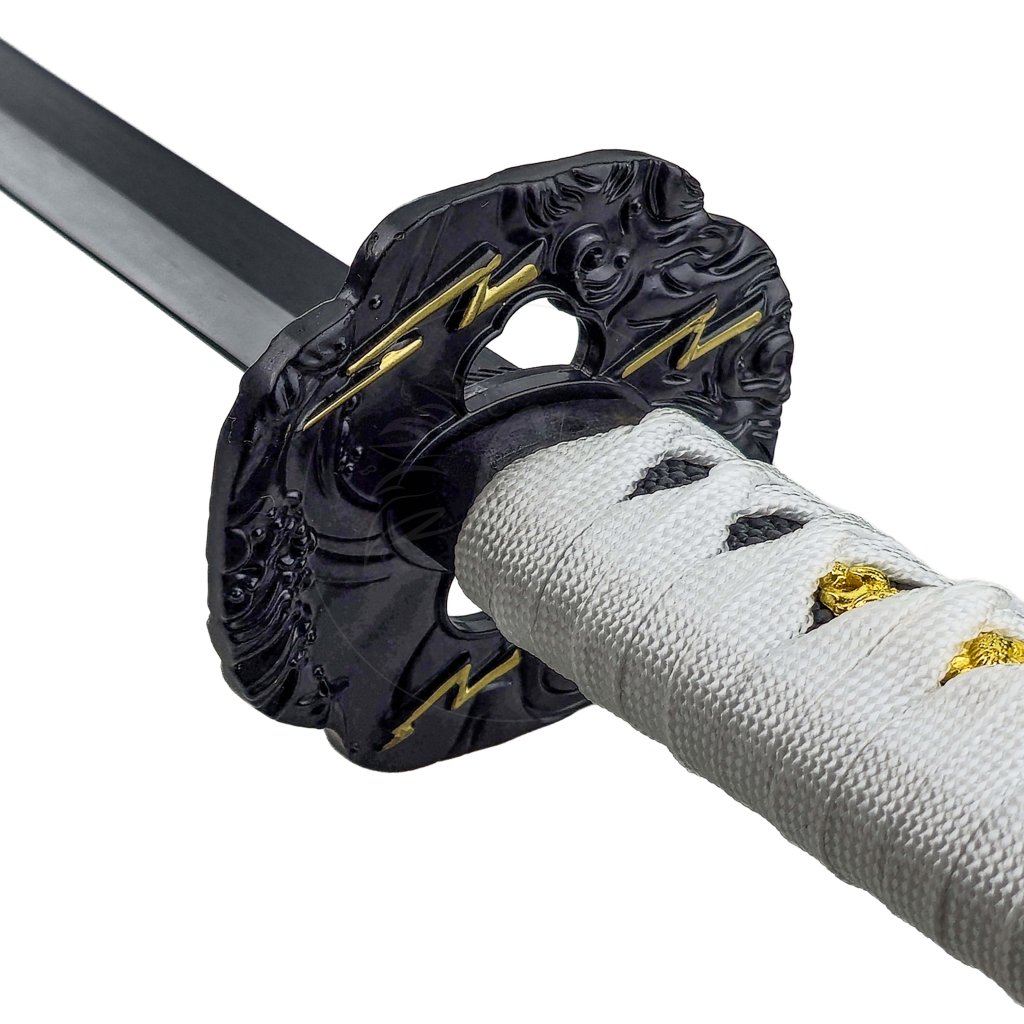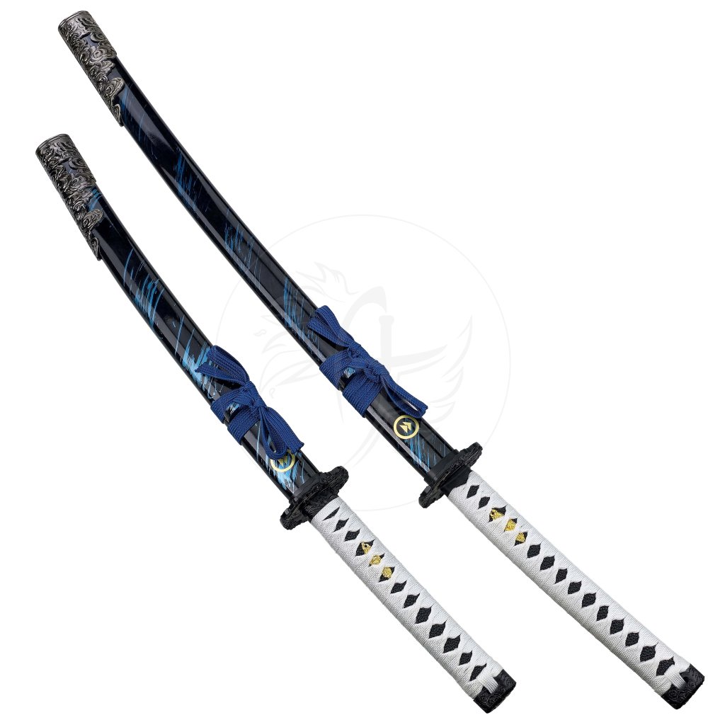 Čepele katany a wakizashi jsou vyrobené z karbonové oceli a nejsou ostřené, což je činí bezpečnějšími pro výstavu a cosplay. Dřevěné pochvy (saya) zdobí černý lak s modrými vzory a kovové detaily ze slitiny hliníku. Rukojeti (tsuka) jsou omotané bílou omotávkou (ito), doplněná ozdobnými prvky menuki. Masivní záštity (tsuba) je vzhledem přesně dle herní předlohy a jsou také ze slitiny hliníku.