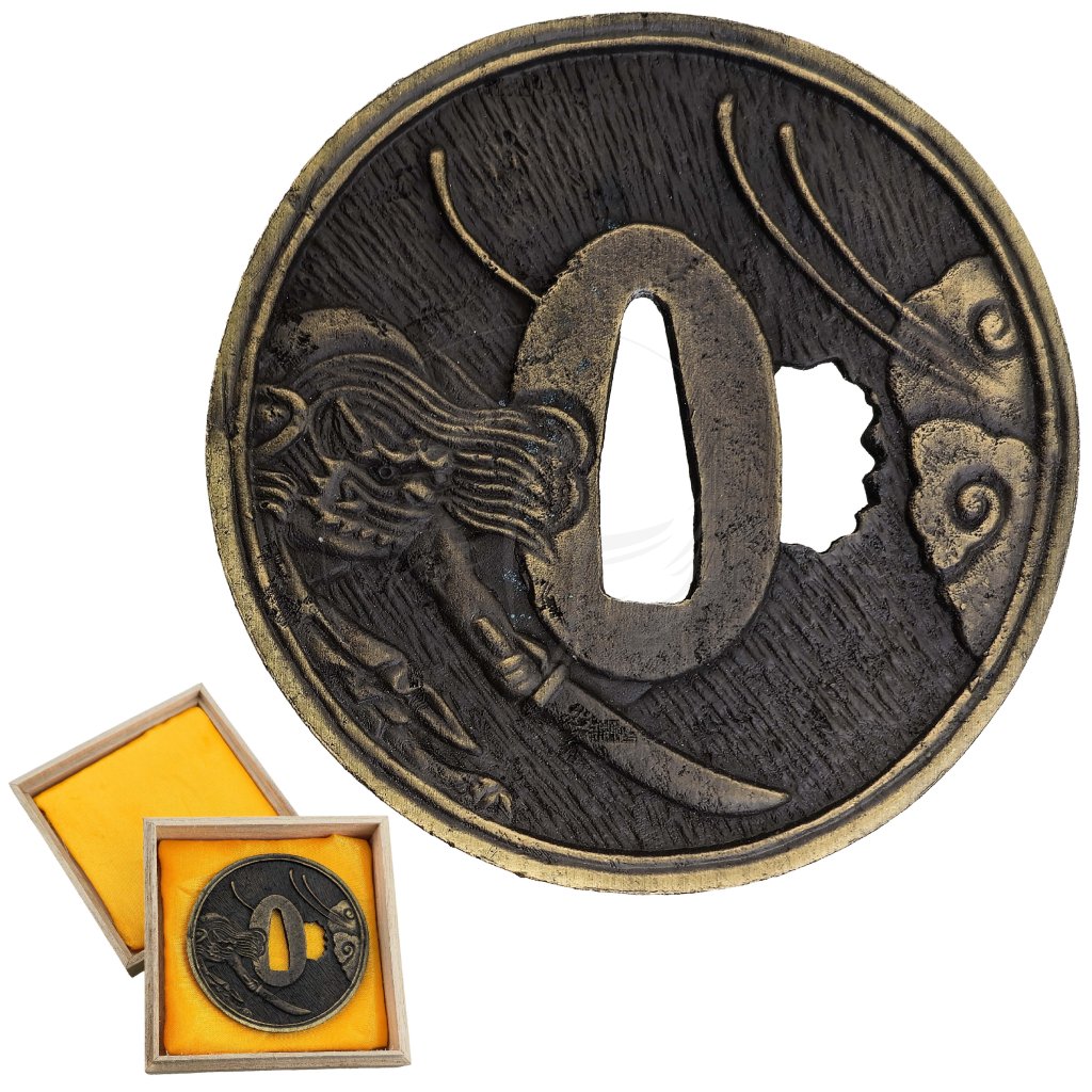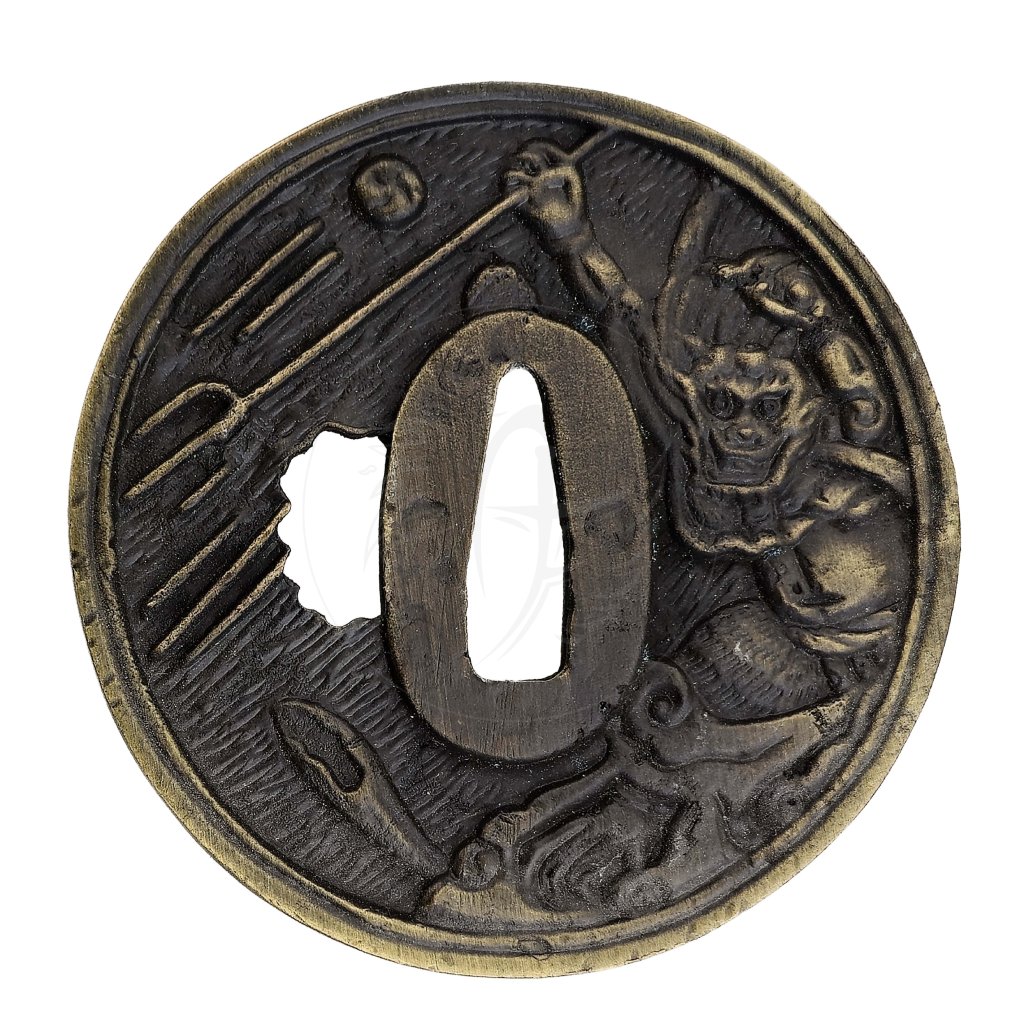 Náhradní záštita „ONI TSUBA“ je kvalitní tsuba určená pro většinu samurajských mečů typu katana, wakizaši či tanto. Je vyrobena ze slitiny zinku, která kombinuje odolnost, pevnost a dlouhou životnost, takže skvěle poslouží jak pro tréninkové sestavy (kata, iaidó), tak pro sběratelské meče a dekorativní úpravy.
