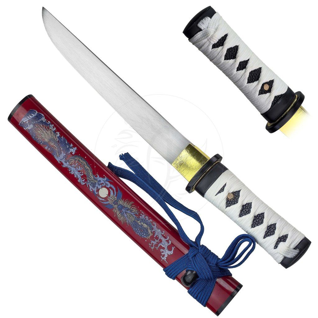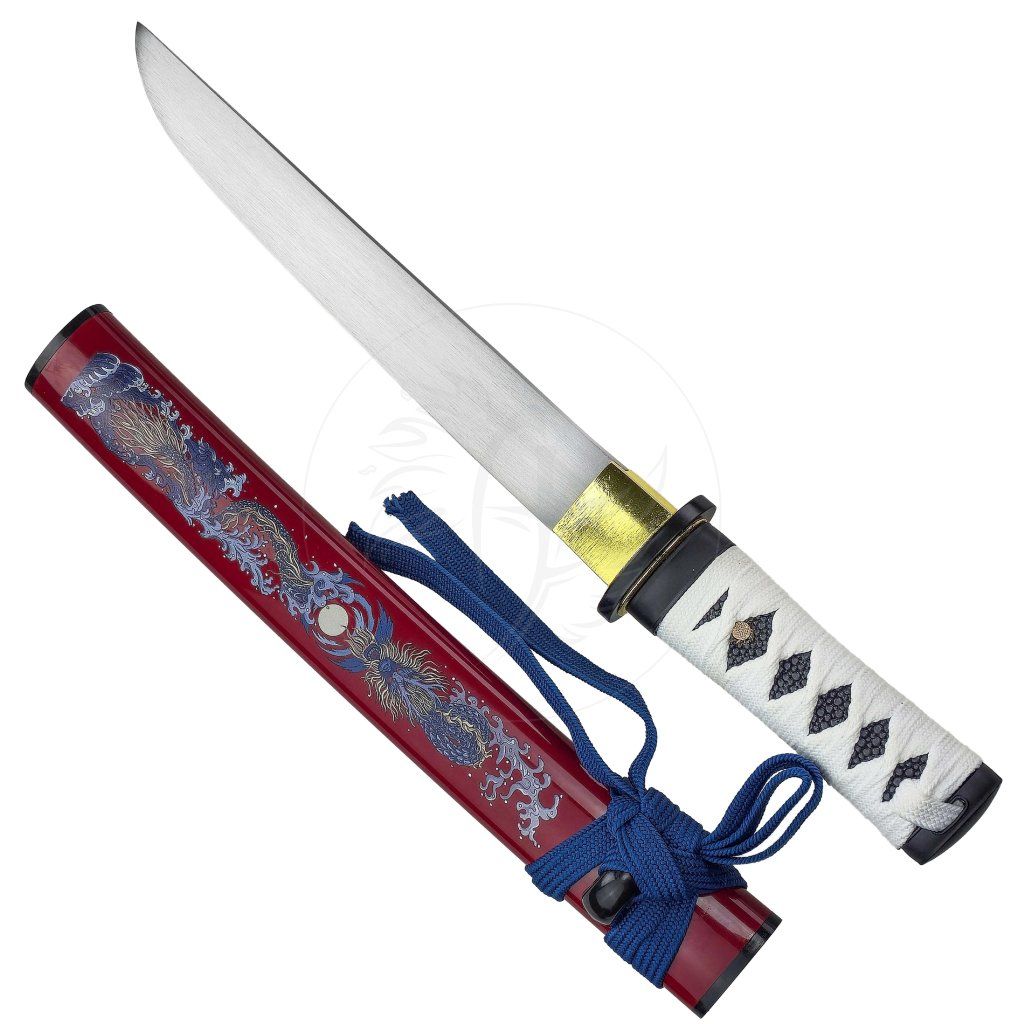 Dalším zajímavým prvkem tohoto tanta je miniaturní záštita, tanto vypadá jako by žádnou neměla. Nůž je dodáván s plastovou zdobnou pochvou, která mu dodává unikátnost a styl. Pochva je zdobena japonským vodním drakem, což dělá tento nůž opravdu výjimečným kouskem. Může se stát skvělým dárkem pro milovníky japonské kultury nebo sběratelů nožů.