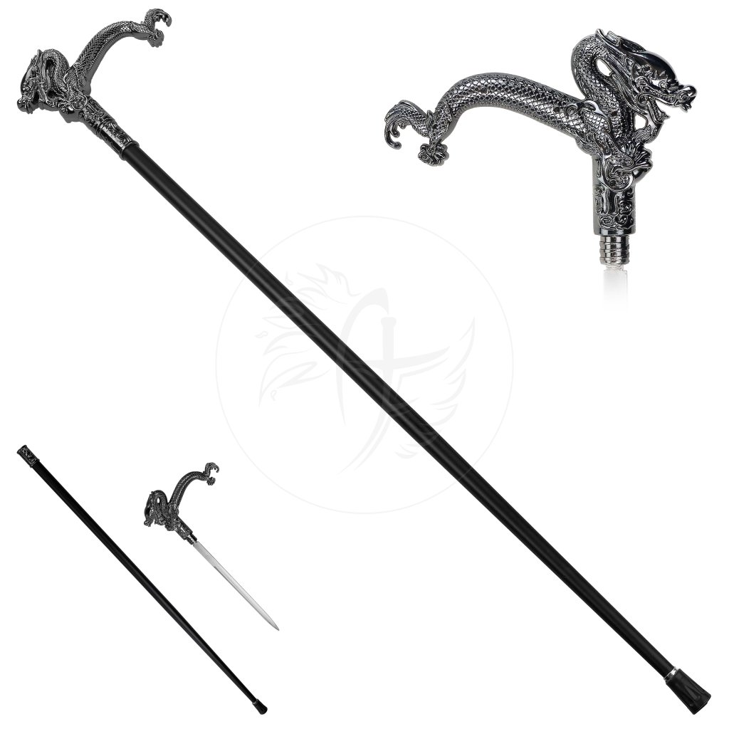 Vycházková hůl "DRAGON" se velice pohodlně drží díky tvaru draka, který je vyroben celý z kovu. Celá hůl nese pouze kovové prvky a zdobení. Samotná dlouhá část hole je pak z hliníkové slitiny. Na konci hole se nachází gumová podložka, která tlumí styk s povrchem země. Hůl je zcela , můžete se o ni lehce opírat a používat ji při rozličných příležitostech.