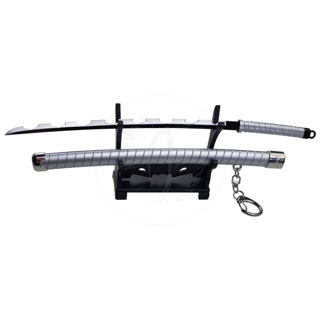 Přívěsek ve tvaru katany, která je inspirována populárním anime Demon Slayer. Tento přívěšek je vyroben z kvalitní hliníkové slitiny, což mu dodává nejen krásný vzhled, ale také zajišťuje odolnost a dlouhou životnost. Meč samotný je bez ostré špičky či čepele, je tak vhodný na nošení kamkoliv.